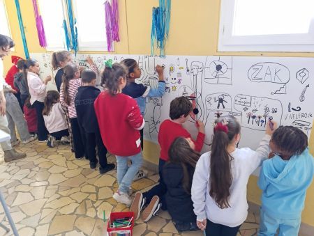 Norya Benaïssa, artiste intervenante, lance le défi aux enfants : « Vous allez réaliser une œuvre d’art collective. Vos dessins seront exposés à Marseille, à la Vieille Charité et au parc Henri Fabre ! »