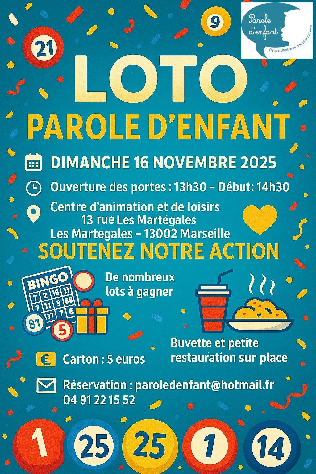 Le Super loto de Parole d'enfant se déroule le dimanche 16 novembre 2025 à 14h30