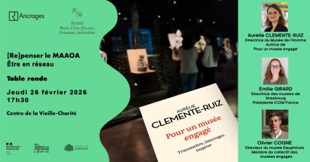 Partie intégrante de la démarche de l’établissement, ce temps d’échange invite de manière ouverte à repositionner la place du MAAOA au sein de l’histoire globale des musées d’ethnologie et d’arts extra-occidentaux mais aussi à confronter les approches variées des pratiques professionnelles tout en interrogeant la capacité des collections à être des porteurs de pluralité de récits et vecteurs de la construction d’une éthique relationnelle partagée.”